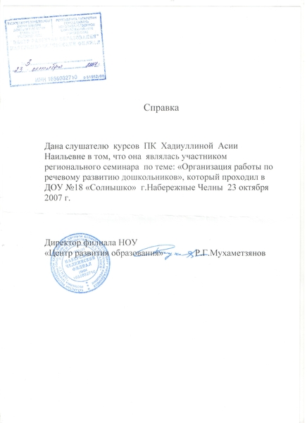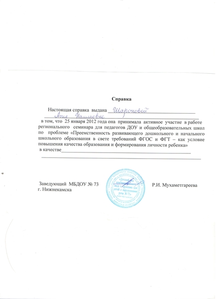 Сертификаты участия и выступлений на семинарах, круглые столы, защита проектов