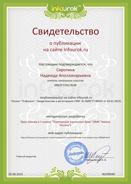 http://infourok.ru/urok-pisma-v-klasse-povtorenie-izuchennih-bukv-umk-shkola-rossii-299949.html