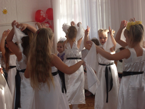 Вед: Мы видим, что вы немного загрустили, и на глазах у вас заблестели слезинки. Так пусть же слезы у вас появляются только от счастья и радости. А сейчас вам подарим наш танец.