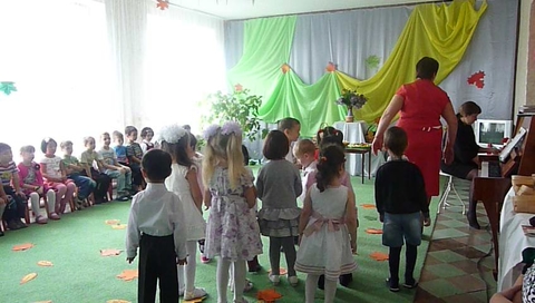 Ведущий: Посмотрите-ка, ребята, как красиво сегодня в нашем зале! Сколько кругом разноцветных листьев! Что же за праздник к нам в гости пришел? Конечно, праздник осени!