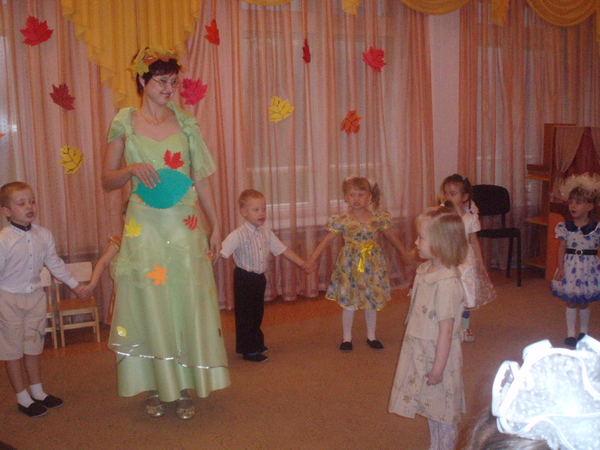 Осень: Дети, какие вы молодцы! И стихи знаете, и замечательно танцуете. А вы песню про осень знаете?