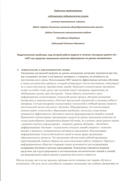 Представление собственного инновационного педагогического опыта
