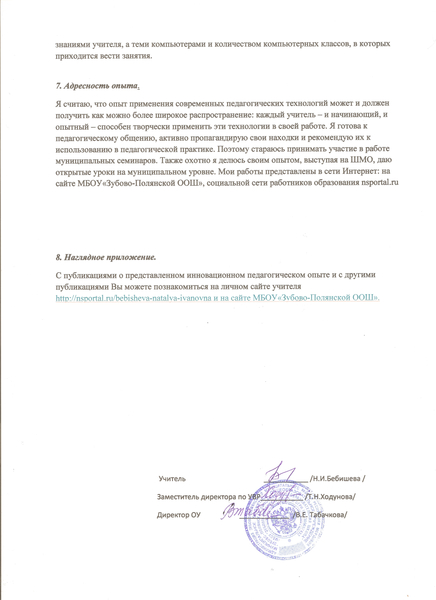 собственного инновационного педагогического опыта