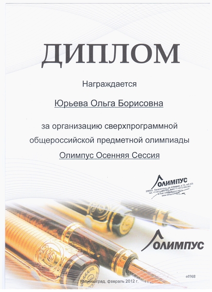 Диплом Осенняя сессия олимпус, 2012 г.